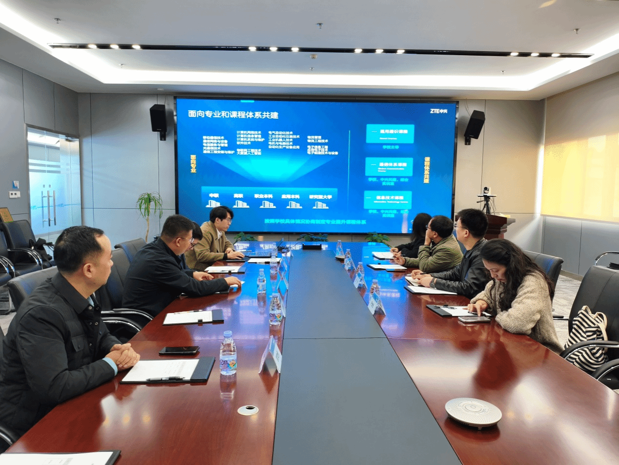 随后双方举行了产教融合方案交流会。中兴通讯校企合作负责人肖鹏举介绍了其在产教融合领域的战略布局与具体方案,具体包括高水平复合型数字人才培养方案、与相关高校在数字产业学院方面的建设成果、中兴通讯ICT技术认证体系以及“中兴专班”从培训到就业的全流程。张伟院长介绍了计算机学院的发展历程、学科特色、师资力量以及人才培养成果。他强调了学院积极对接国家战略与区域经济发展需求,致力于培养复合型、应用型计算机人才的办学理念。他对对中兴通讯在信息通信领域的领先地位及成熟的产教融合经验表示高度赞赏,希望计算机学院能够与中兴通讯这样的行业龙头企业合作,希望双方能够尽快推动合作意向落地实施。欧阳宏基副院长介绍了学院人才培养方案在学科认知见习、课程设计、生产实习等实践环节的实施过程。期待中兴通讯优秀工程师能够加入到学院企业导师队伍,校企双方共同制定培养方案,嵌入企业前沿技术课程,由企业工程师与学院教师联合授课,共同指导毕业设计,并安排学生进入企业进行顶岗实习,实现“入学即入职、毕业即上岗”的无缝对接,为学生提供一条从校园到职场的精准、高效通道。