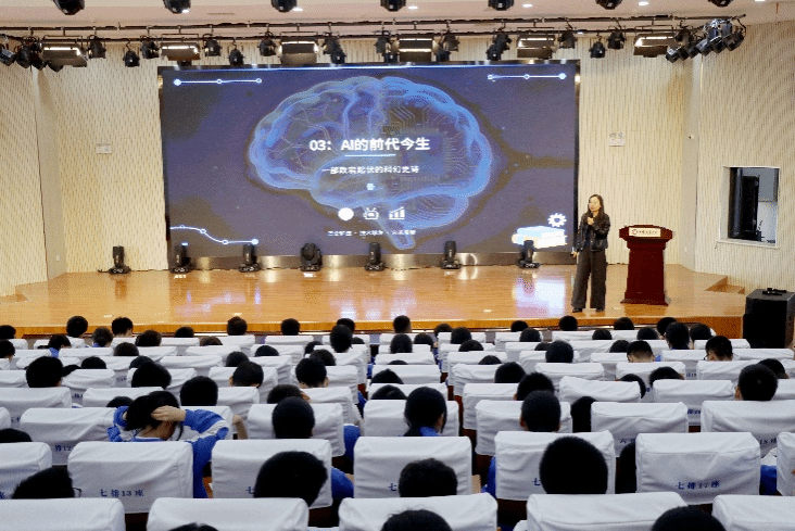 讲座中,韩老师结合中学生认知特点,重点引导同学们树立正确的 AI 使用观念,强调AI 是工具而非替代品,鼓励大家夯实数学、物理、语文、英语等学科基础,主动体验 AI 技术、培养批判思维与创造能力,合法合规、安全负责地拥抱人工智能时代。现场互动氛围热烈,有效激发了学生对人工智能技术的兴趣与热情。
