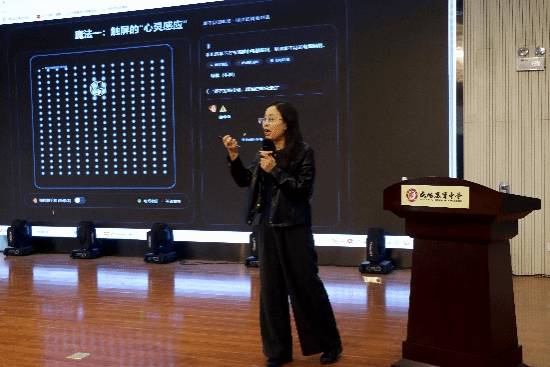 本次讲座紧扣学院 2026 年创新发展目标,聚焦中小学科技教育提质需求,系统讲解人工智能核心知识。韩老师从 “AI 初体验” 切入,以触屏识别、智能拍照、算法推荐、芯片算力等学生日常接触的科技场景为案例,用通俗易懂的语言揭示 AI 运行原理,让同学们直观感受 “身边的人工智能”。随后,讲座围绕 AI 概念与核心原理、发展历程与关键里程碑、多领域应用全景、智能体与未来趋势、青少年与 AI 共成长六大模块展开,通过趣味问答、原理图解、实物演示、真假 AI 作品辨别等互动形式,深入浅出讲解机器学习、生成式 AI、AI 智能体、具身智能等前沿知识,全面展示 AI 在教育、医疗、文化遗产保护、自动驾驶、艺术创作等领域的应用价值。